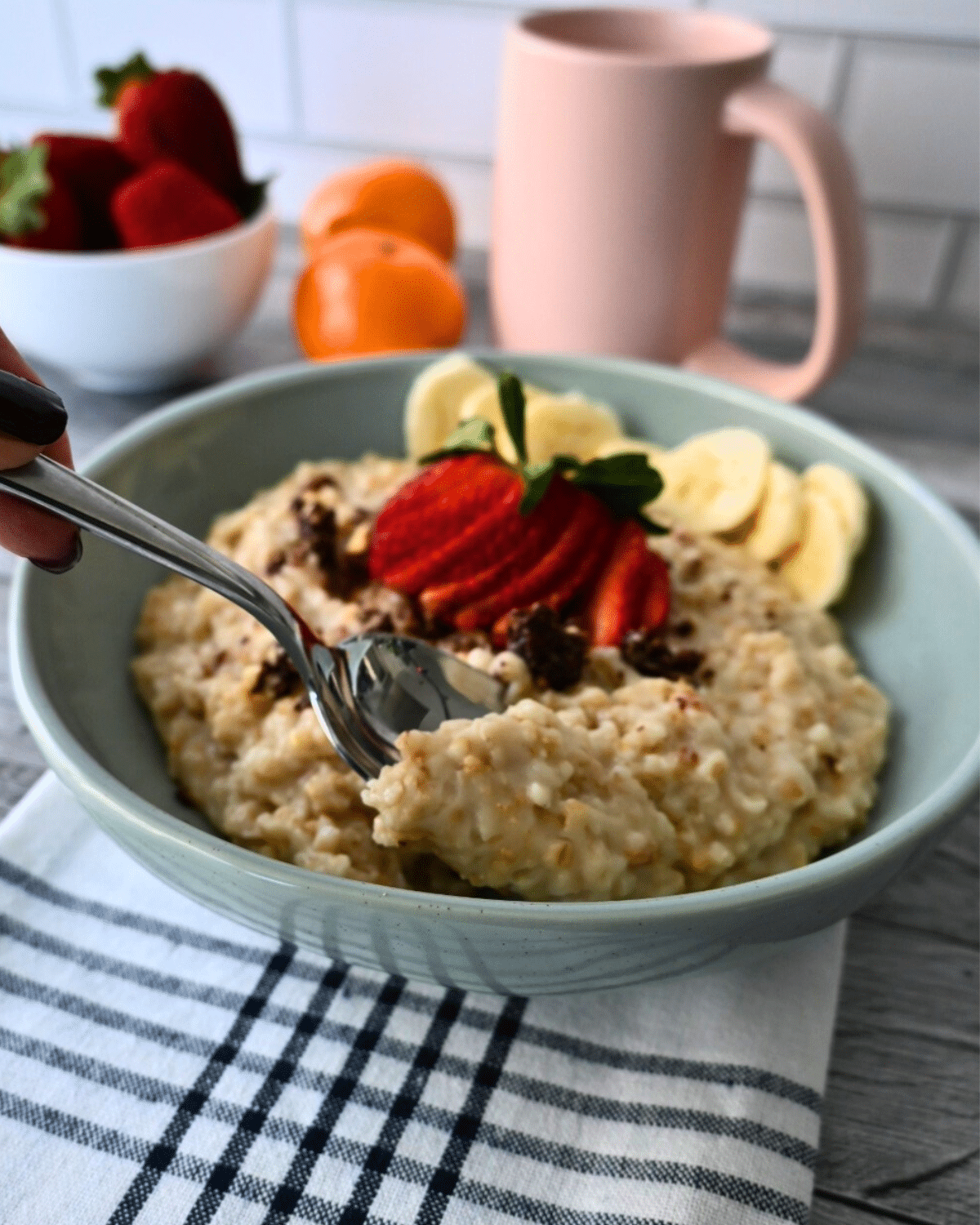 This recipe is great served at large brunch gatherings. I love setting up an oatmeal bar with various toppings on the side for a make-your-own oatmeal experience.