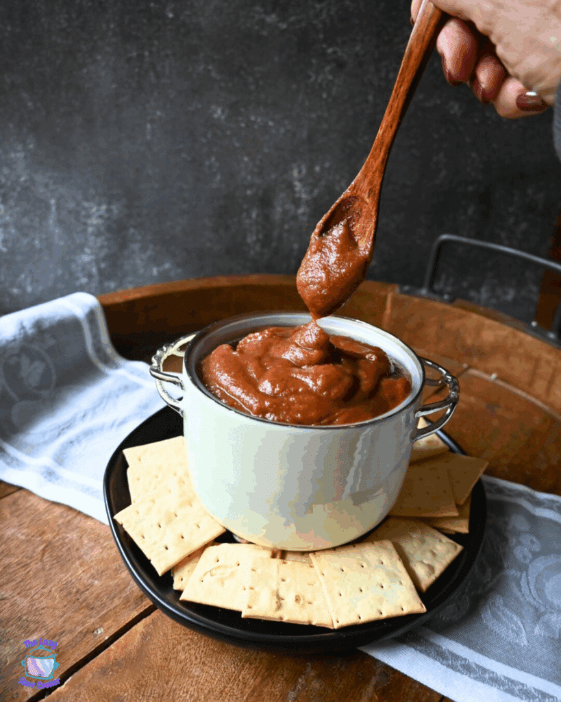 Slow Cooker Salted Date Caramel Apple Butter is a creamy, no-sugar twist on traditional apple butter. Made with fresh, crisp apples and sweet medjool dates, it is mellow and delicious without any refined sugar. Your kitchen will smell like caramel apples at a fair while your slow cooker does all the work