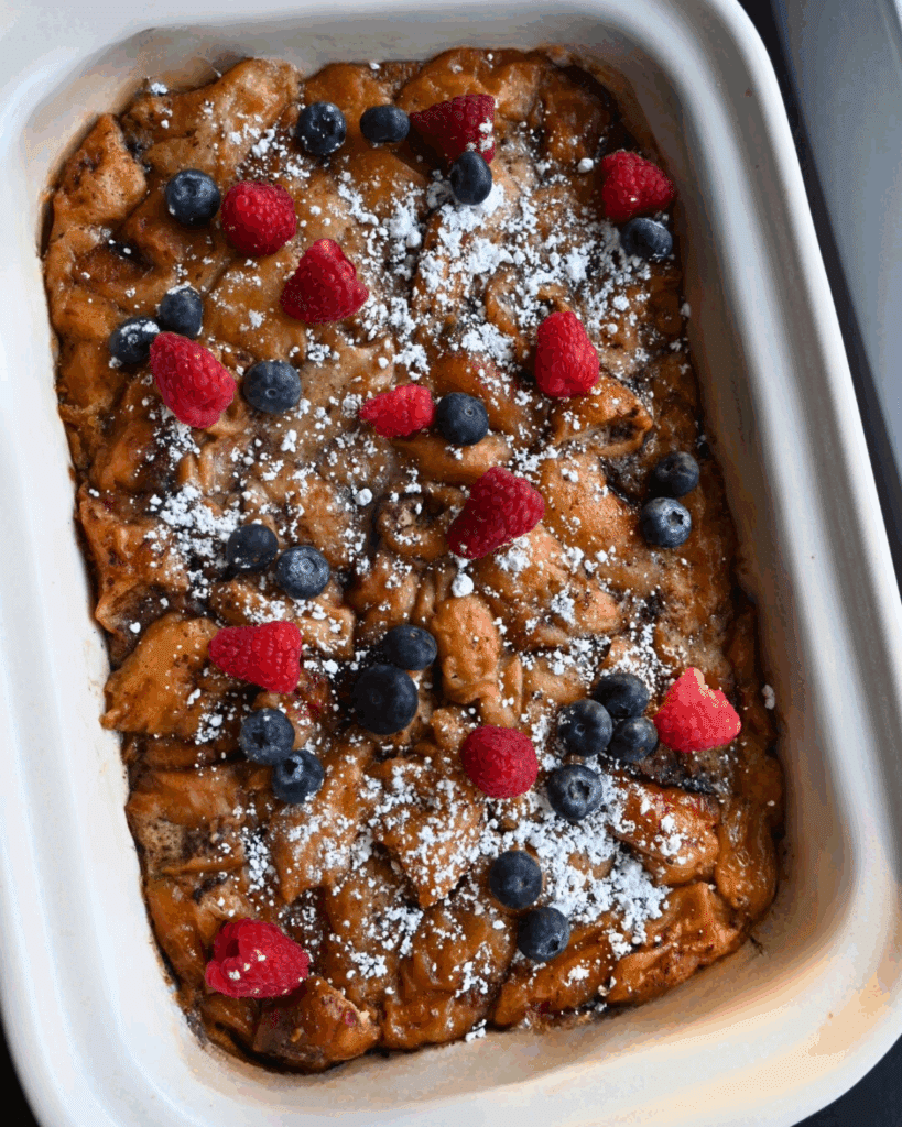 - top with powdered sugar, berries, whipped cream, chocolate chips, or your favorite toppings and serve.