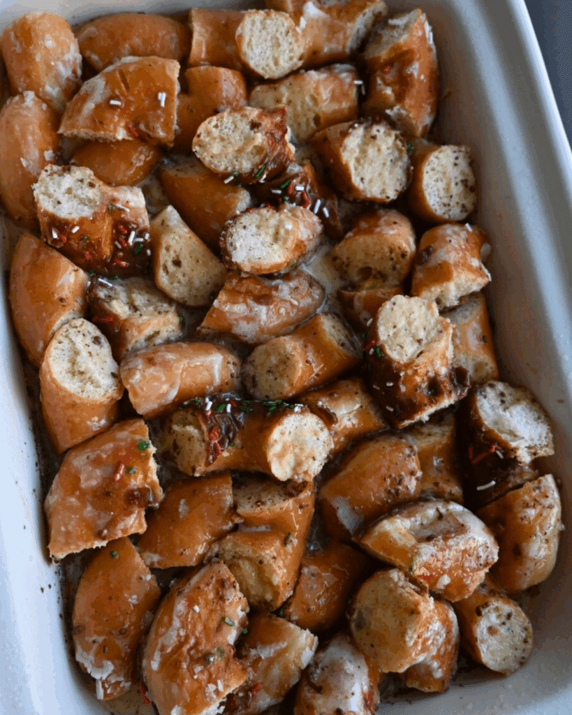 - Short on time? Cut the donuts into smaller pieces and poke with a fork to speed up the absorption process.