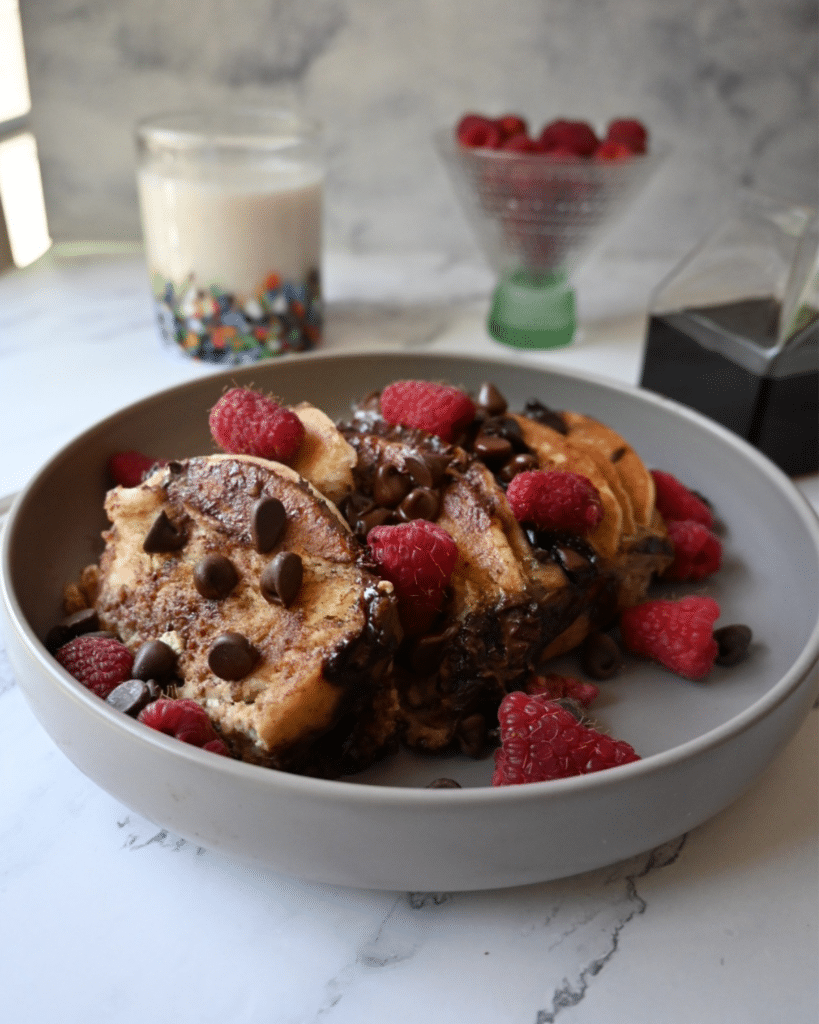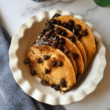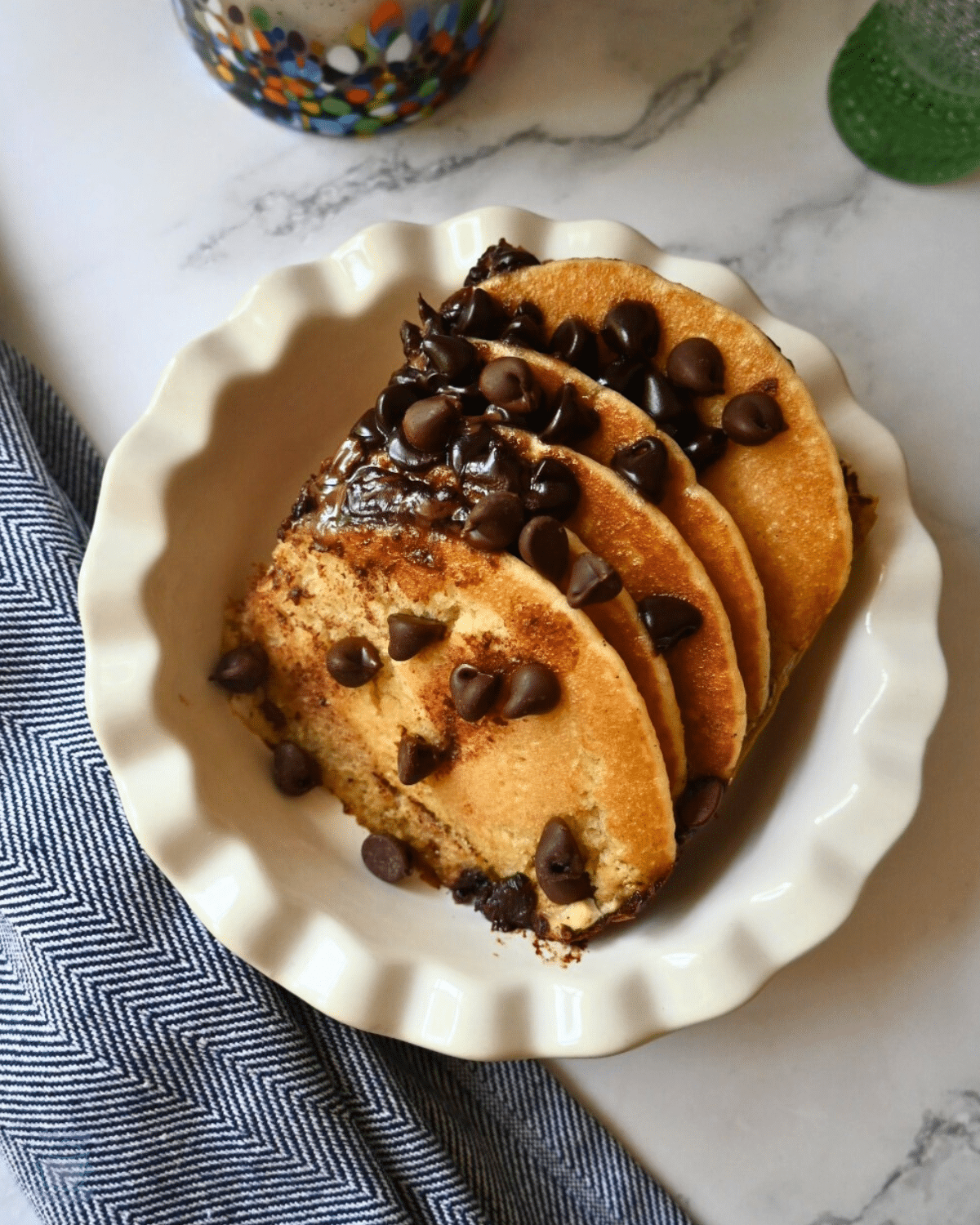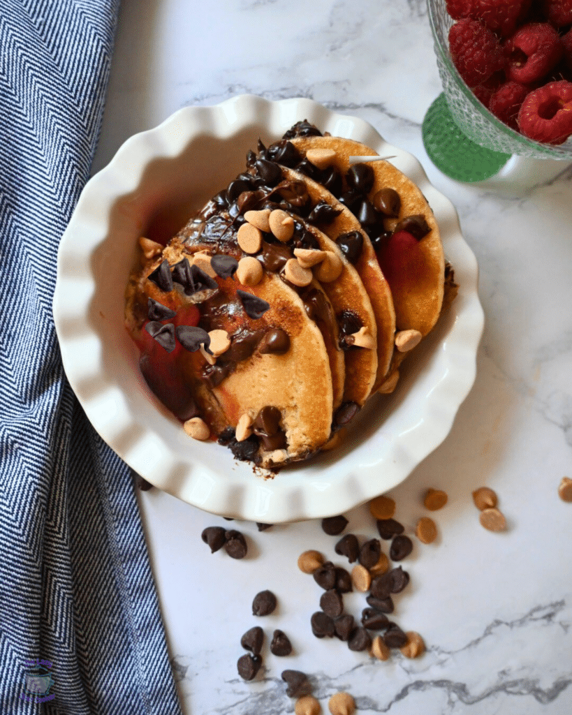 - 🥞Sprinkle with chocolate chips (or my favorite combo, peanut butter chips AND chocolate chips!).